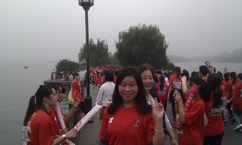 汪露:其實我參加的原因很簡單,因為沒見過這么浩大的場面,覺得人生很難再遇一次,就覺得應該要去見見,人生苦短,趁年輕,趁活著,趁還有那個心情。跑后算是見到的,人山人海,還幾乎都是清一色服裝,放眼望去,一堆紅色在逛西湖。