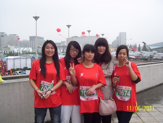 韓禮清:參加馬拉松完全是一次偶然的機會。當時我沒報名參加的,本來是為拉拉隊去的,結(jié)果有事凱凱沒去,多了一個名額,猶豫再三代替凱凱跑了。試想,一個人如果連續(xù)跑6.8公里都能堅持下來。還有什么困難不可以克服!于是我我抱試試的態(tài)度,最終也堅持下來了!挺鍛煉自己的意志,促進身心健康。跑跑挺好的。能夠有一次萬人一起跑步,也是一件非常開心的事情。值得留念!下次有這樣的活動還想繼續(xù)參加!