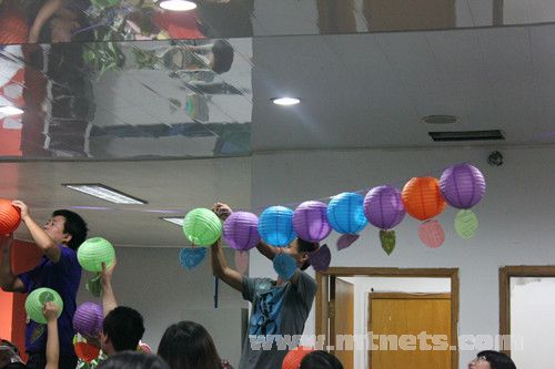21日下午,活動如約而至,兩位主持人溫情開場,帶領(lǐng)大家做游戲,贏獎品,其后開始掛燈活動,大家在精美的卡片上寫下自己的心愿和祝福,領(lǐng)取橙、綠、藍、紫各色中秋彩燈,高高掛起于辦公區(qū)內(nèi)。