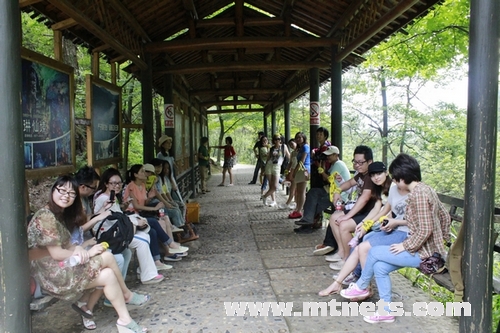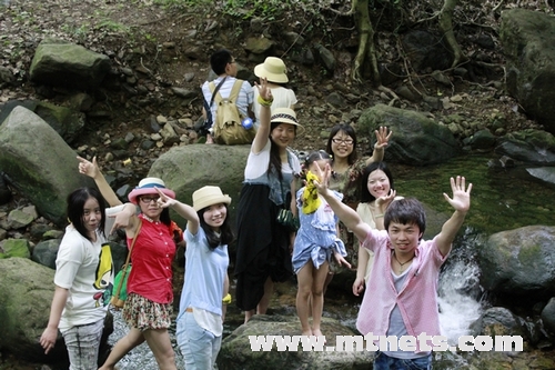 站在山腳,抬眼望去一片綠海。入景區(qū)門,綠樹掩映,修竹深深,心情亦隨之寧靜;過金牛潭,入青春世界,童趣玩樂,興致盎然。沿溪行,溪澗頑石累累,大小不一,形態(tài)各異,千奇百怪。拾級而上,山勢平緩,峰巒疊翠。時有索橋掛于溪流之上,下有碧潭,深不見底,水色似翡翠,如瑪瑙,纖毫畢現(xiàn),嘆為奇觀。山頂龍?zhí)镀俨硷w流直下,蔚為壯觀,置身其下,涼意襲身,愜意無比。登高遠(yuǎn)眺,山道蜿蜒,梯田青青,屋舍依疏,美不勝收。下山時有滑鼠可坐,5車連成一組,沿鐵軌滑下,中有彎道,速度極快,尖叫中雙手緊拉手剎,驚險刺激。雖下車時或覺腿軟,但也不失為一次難忘的經(jīng)歷。