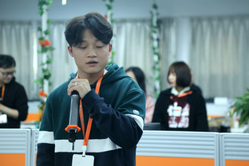 下面的這位小哥哥也是新人哦,而且當(dāng)天還唱了一首《南山南》,他就是來自我們環(huán)保在線的江鴻