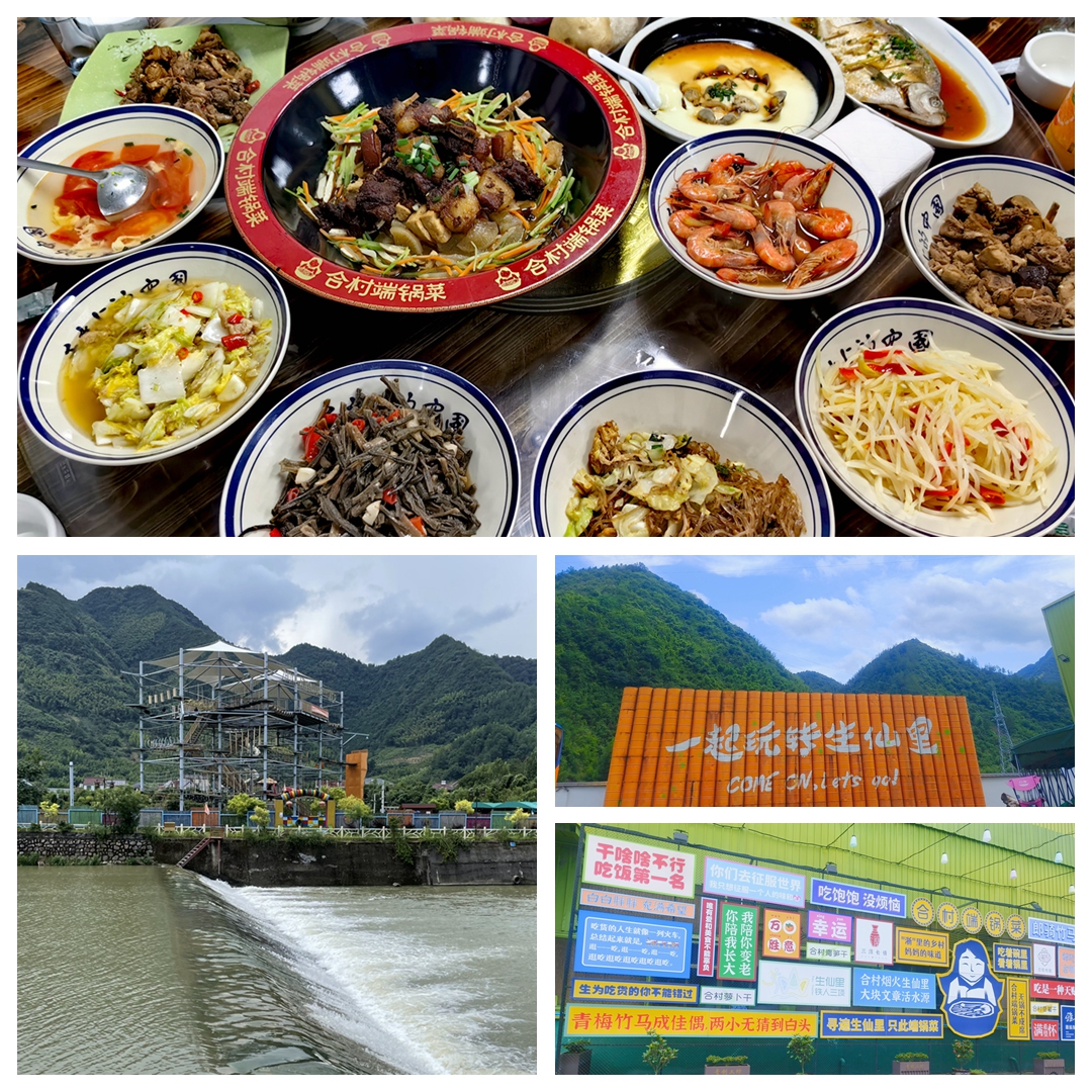 此次打卡的“農(nóng)家小院”也頗有些設(shè)計(jì)感,由廠房改建而成,獨(dú)立于山野之外,卻不失人間煙火氣。有著桐廬地方風(fēng)味的特色菜品已提前備好,葷素搭配、咸淡適中,正符合小伙伴們的胃口,分分鐘上演“光盤行動(dòng)”。