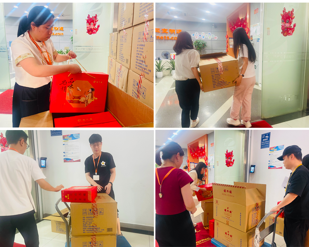 臉上洋溢的笑容是員工最真實的心情,一箱箱一盒盒精美的端午節(jié)禮盒,陸續(xù)分發(fā)到每個員工的手中,呈現(xiàn)出公司濃厚的節(jié)日氛圍。這個下午對于大家來講,應該會是一天中最幸福和開心的時刻吧!