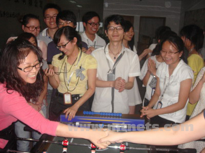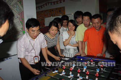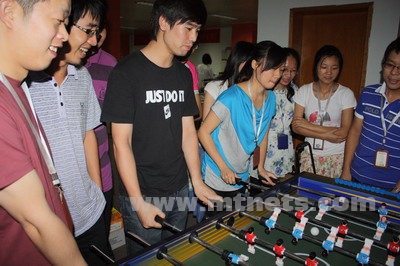 7月初,在南非世界杯如火如荼進(jìn)行著的時(shí)候,明通公司桌上足球比賽也開(kāi)打了。桌上足球是個(gè)新鮮的玩意,絕大部分人都沒(méi)玩過(guò),雖然如此,但依然有64位同事激情的參與,公司總經(jīng)理、市場(chǎng)總監(jiān)等足球愛(ài)好者也紛紛參與其中。