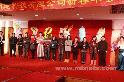 總經(jīng)理陳勝明的新春致辭拉開(kāi)了新春年會(huì)的序幕,回顧過(guò)去的一年,明通公司取得了品牌價(jià)值、市場(chǎng)業(yè)績(jī)和企業(yè)文化建設(shè)的多重豐收。在政府各部門(mén)的大力支持和全體明通人的共同努力下,公司榮獲了國(guó)家高新技術(shù)企業(yè)、國(guó)家注冊(cè)商標(biāo)認(rèn)證、最具創(chuàng)新價(jià)值電子商務(wù)企業(yè)、CMMI3國(guó)際認(rèn)證等重量級(jí)榮譽(yù)。為了共同的夢(mèng)想,明通人齊心協(xié)力,激情拼搏,在市場(chǎng)業(yè)績(jī)和公司發(fā)展上遞交出一份驕人的輝煌成績(jī)單。陳總在致辭中向全體明通人表達(dá)了無(wú)限的感恩之情。展望新的一年,他又以堅(jiān)定的信心指點(diǎn)明通和百站的發(fā)展方向,明通百站堅(jiān)持在電子商務(wù)的領(lǐng)域里深耕,在幫助中小企業(yè)網(wǎng)絡(luò)掘金的道路上樹(shù)立明通百站的優(yōu)質(zhì)品牌,滿懷豪情的展望讓臺(tái)下所有明通百站人振奮不已。