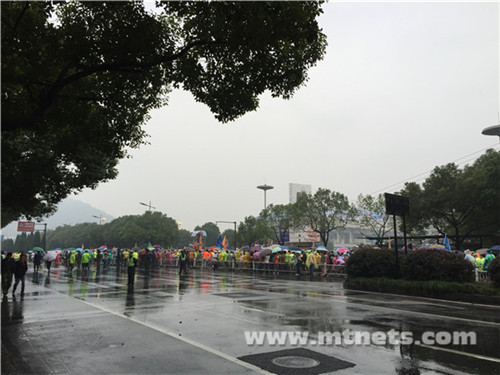 11月1日,天公不作美,下起了小雨,最低氣溫也只有12攝氏度,還有3級(jí)大風(fēng),寒意逼人,但這雨絲毫沒(méi)有影響到馬拉松跑友們高漲的熱情。上午8時(shí),2015杭州馬拉松在杭州黃龍?bào)w育中心廣場(chǎng)鳴槍開(kāi)跑。