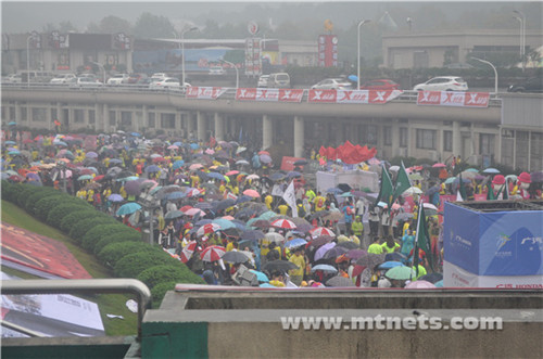 早上7點(diǎn)40分,伙伴們就抵達(dá)了集合地點(diǎn),相互佩戴號(hào)碼布以及熱身,沒(méi)有一個(gè)人因?yàn)樘鞖庠蚨丝s,為他們點(diǎn)個(gè)大大的贊!