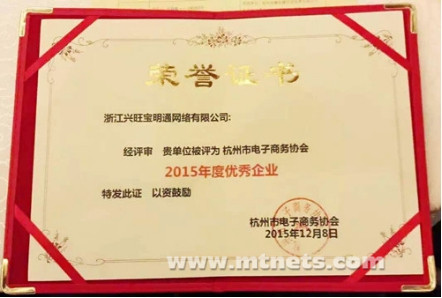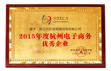 興旺寶明通榮獲“2015年度杭州電子商務(wù)優(yōu)秀企業(yè)”稱號