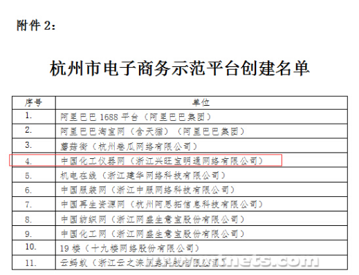 為了響應(yīng)號(hào)召,杭州市電子商務(wù)工作聯(lián)席會(huì)議辦公室積極開展杭州市電子商務(wù)示范工程創(chuàng)建工作,經(jīng)各區(qū)、縣(市)商務(wù)主管部門對(duì)申報(bào)企業(yè)進(jìn)行審核推薦,杭州市電子商務(wù)示范工程專家委員會(huì)評(píng)審,目前已確定45家杭州市電子商務(wù)示范企業(yè),11個(gè)杭州市電子商務(wù)示范平臺(tái)、8家杭州市電子商務(wù)示范基地(園區(qū))名單。興旺寶明通旗下中國化工儀器網(wǎng)榮獲“杭州市電子商務(wù)示范平臺(tái)”稱號(hào)。