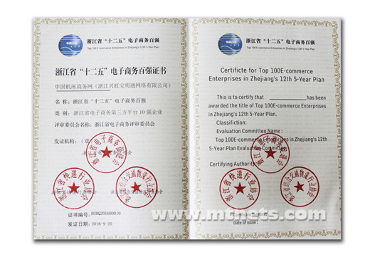 浙江省電子商務(wù)第三方平臺(tái)10強(qiáng)企業(yè)證書(shū)