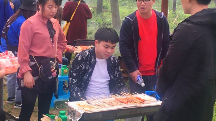 在歡聲笑語(yǔ)中,我們離開了古村。想象著燒烤的香味,我們乘上大巴前往下一個(gè)目的地,去安撫我們的五臟廟。