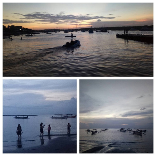 由于飛機(jī)晚點(diǎn),原本第一天行程情人崖被安排至4.24日。飯后,乘坐導(dǎo)游車(chē)來(lái)到酒店辦理入住手續(xù)。小伙伴們各自回房休息,待到傍晚時(shí)刻,一起去酒店附近的沙灘玩耍。巴厘島傍晚沙灘美的猶如一幅畫(huà),讓小編頃刻間看到了莫奈《日出·印象》朦朧美的“身影”。