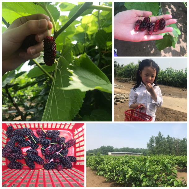第二項(xiàng):桑葚園采摘。趕著果實(shí)最后的收獲季,過(guò)一把采摘癮,邊摘邊吃,仿佛回到了童年偷吃的時(shí)光。