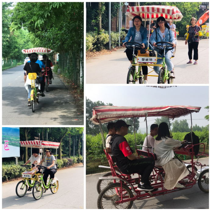 第四項(xiàng):騎自行車。與平常的自行車不同,這次我們騎的是雙人/四人自行車,需要合作進(jìn)行,一起用力。雖然看似簡(jiǎn)單,但要想控制好方向,還需兩人一心哦!