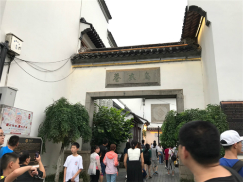 圖為秦淮河文德橋旁的烏衣巷。烏衣巷是晉代王謝兩家豪門大族的宅第,是中國歷史最悠久最著名的古巷。唐代劉禹錫有詩:“朱雀橋邊野草花,烏衣巷口夕陽斜。舊時王謝堂前燕,飛入尋常百姓家。”