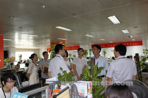 王處一行在陳總等人的陪同下參觀了公司技術部、市場部、服務部、編輯部等辦公區(qū)域,對公司的發(fā)展規(guī)模表示贊賞。陳總詳細介紹了公司各職能部門的主要工作和業(yè)績,講解了公司近幾年的發(fā)展歷程和增長數(shù)據(jù)。王處鼓勵明通發(fā)揮公司核心優(yōu)勢,繼續(xù)保持這樣高速發(fā)展的勢頭,杭州信息服務業(yè)的發(fā)展需要明通這樣有實力的科技企業(yè)。