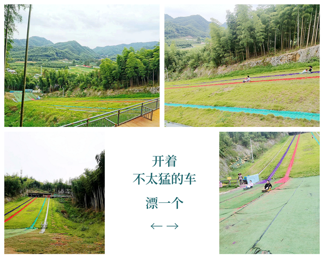 在綠竹勁翠間,本次戶外游體驗的首站——滑草,說話間就在眼前。