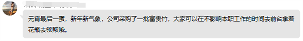 沒想到吧,你以為元宵活動(dòng)結(jié)束了,但其實(shí)大行政還為我們準(zhǔn)備了一批富貴竹,富貴竹在我們公司算是“老朋友”了,幾乎人人工位上都有那么幾株。通知發(fā)出后,大家井然有序地到前臺(tái)領(lǐng)取,不一會(huì)兒,一桶富貴竹就被領(lǐng)光了。