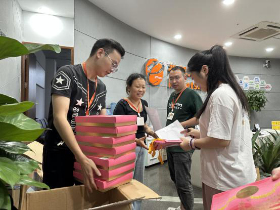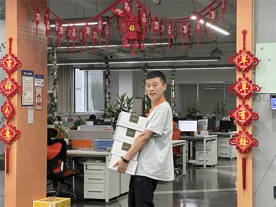 為保證中秋福利及時發(fā)放,公司將禮品一一搬至前臺,各部門員工陸續(xù)前來,推著推車搬運禮品,行政部人員仔細清點,絕不漏掉每一個小伙伴的禮品,現(xiàn)場歡聲笑語一片,洋溢著濃濃的節(jié)日氛圍。