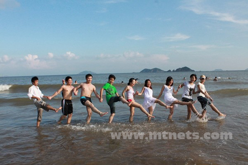 入住農(nóng)家,我們住的那地方叫東海漁村,短暫休整后坐車來到南長(zhǎng)途沙灘,帥哥美女們享受著海水日光浴,合影戲水,還有沙灘排球等娛樂活動(dòng),精神上得到了徹底的放松,反過來想想,在基湖沙灘是兩天行程中玩的最happy的時(shí)光了,玩到夕陽西下,我們返回農(nóng)家,等待我們的是當(dāng)天的第一頓飯,品種豐富的海鮮讓大家大飽口福。