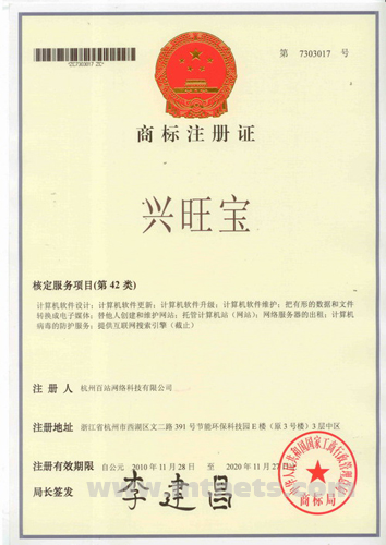 百站、興旺寶榮獲42類服務(wù)注冊(cè)商標(biāo)證