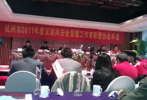 分局領(lǐng)導(dǎo)表示杭州市順利完成了“凈網(wǎng)”行動(dòng)、網(wǎng)絡(luò)電視棒清理、打擊網(wǎng)絡(luò)黑市等多項(xiàng)工作任務(wù),離不開全市互聯(lián)網(wǎng)企業(yè)的大力支持和積極配合。2012年將對(duì)全市網(wǎng)絡(luò)企業(yè)特別是本次與會(huì)企業(yè)提出更高的網(wǎng)絡(luò)監(jiān)管和安全管理要求,更對(duì)獲得互聯(lián)網(wǎng)安全管理先進(jìn)單位的企業(yè)寄予厚望,希望先進(jìn)單位繼續(xù)做好優(yōu)秀帶頭工作,為保障杭州市互聯(lián)網(wǎng)秩序穩(wěn)定,構(gòu)建和諧網(wǎng)絡(luò)環(huán)境承擔(dān)起責(zé)任。