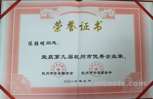 第九屆杭州市優(yōu)秀企業(yè)家評選活動在市經(jīng)信委的指導(dǎo)下,由市企聯(lián)、市企協(xié)組織圓滿完成,本次評選活動經(jīng)推薦、初審、考評、公示、審定等環(huán)節(jié),對2012年全市堅守在各行業(yè)領(lǐng)域努力奮斗,為杭州經(jīng)濟社會發(fā)展做出了貢獻的卓越企業(yè)家進行綜合選評。杭州市經(jīng)信委市場處處長蔡德全宣讀了關(guān)于表彰第九屆杭州市優(yōu)秀企業(yè)家的決定,市經(jīng)信委領(lǐng)導(dǎo)為優(yōu)秀企業(yè)家頒獎。